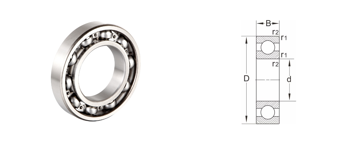 디 | 디 | 비 | r1,r2 분 | 동적하중 Cr | 정하중 Cor | 그리스 윤활 | 오일 윤활 | ||